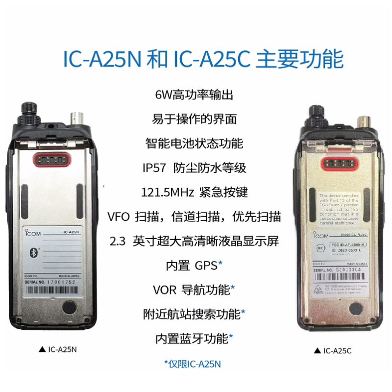 ICOM艾可慕IC-A25航空对讲机 大屏幕/GPS导航/蓝牙/智能电量/飞行APP
